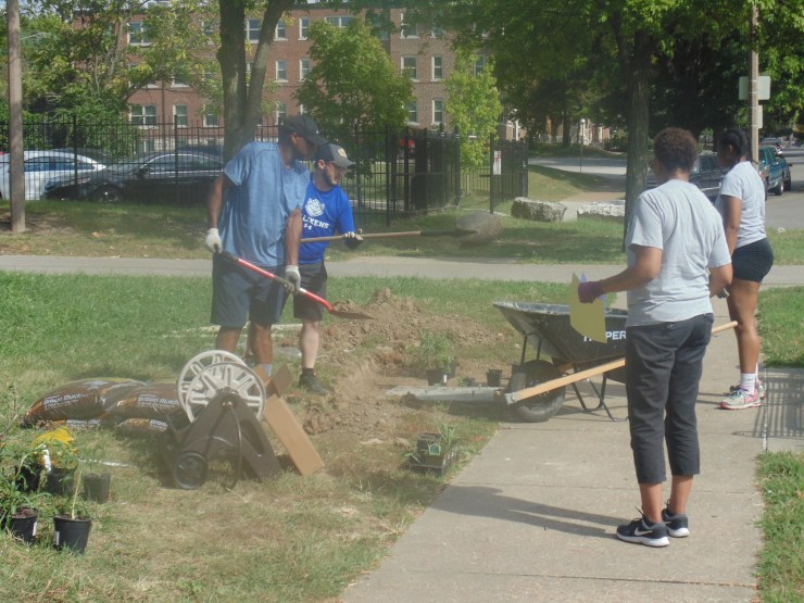 Residents of the West End Neighborhood and volunteers gathered on October 5th, 2019 to build a garden through Operation Brightside. Native Missouri plants were provided and planted at a dedicated space in Ruth Porter Mall Park. This space will also have a Little Free Library where residents can take or leave a book for free.